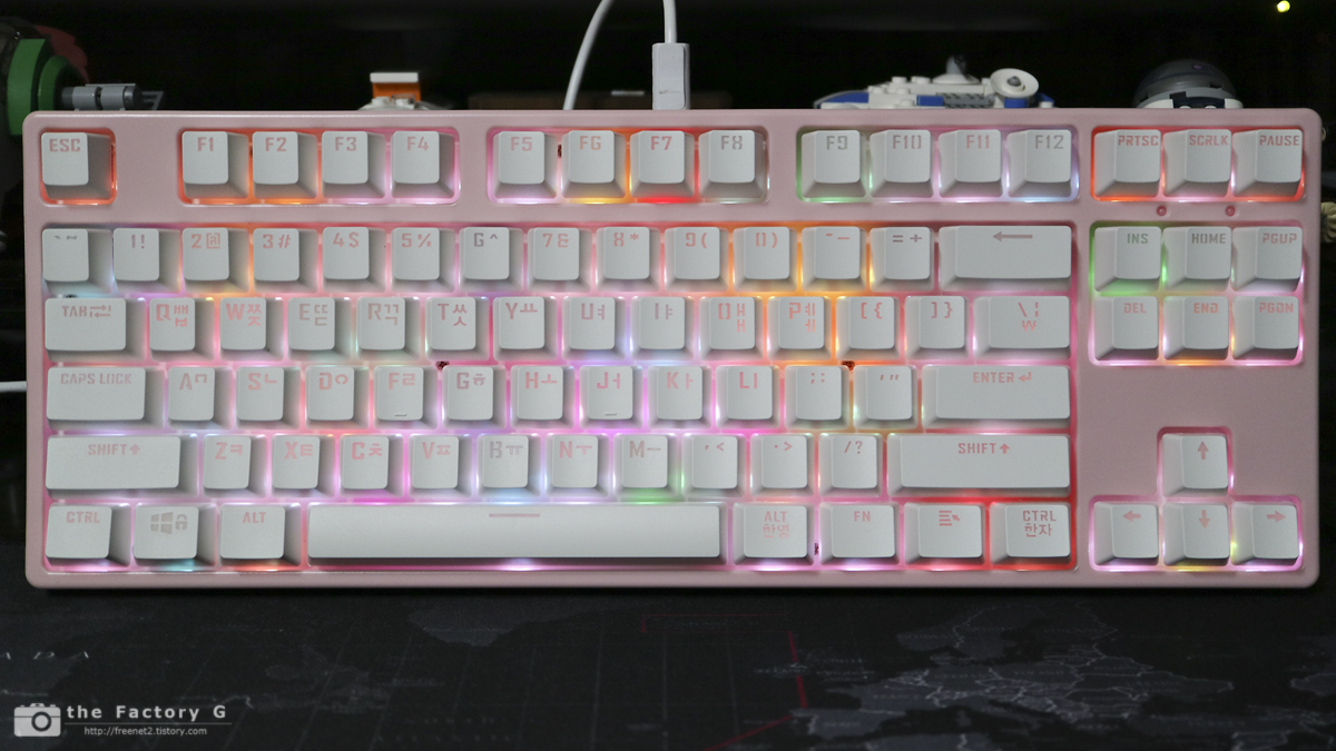 나름 나쁘지않은 구성을 자랑하는 키보드입니다. 핑크색의 프레임 또한 잘 어울리는 편입니다.