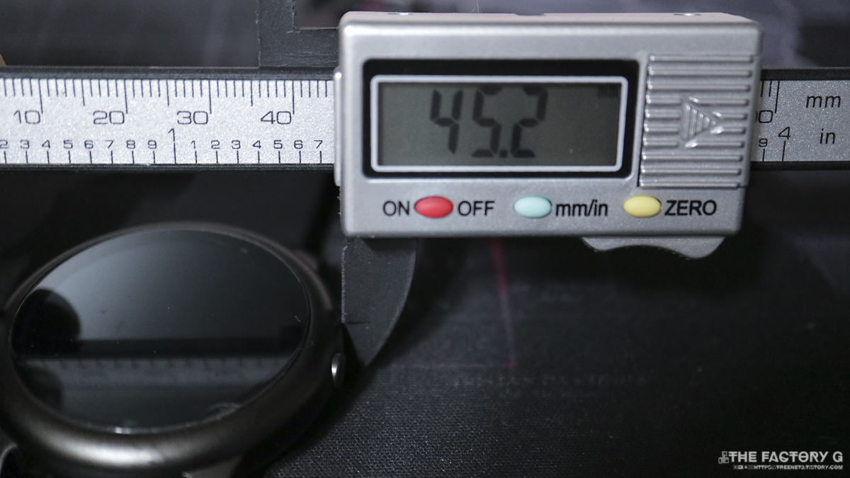케이스 지름은 45mm 이며 러그 투 러그는 48mm, 케이스 두께는 12mm입니다. 작은 사이즈는