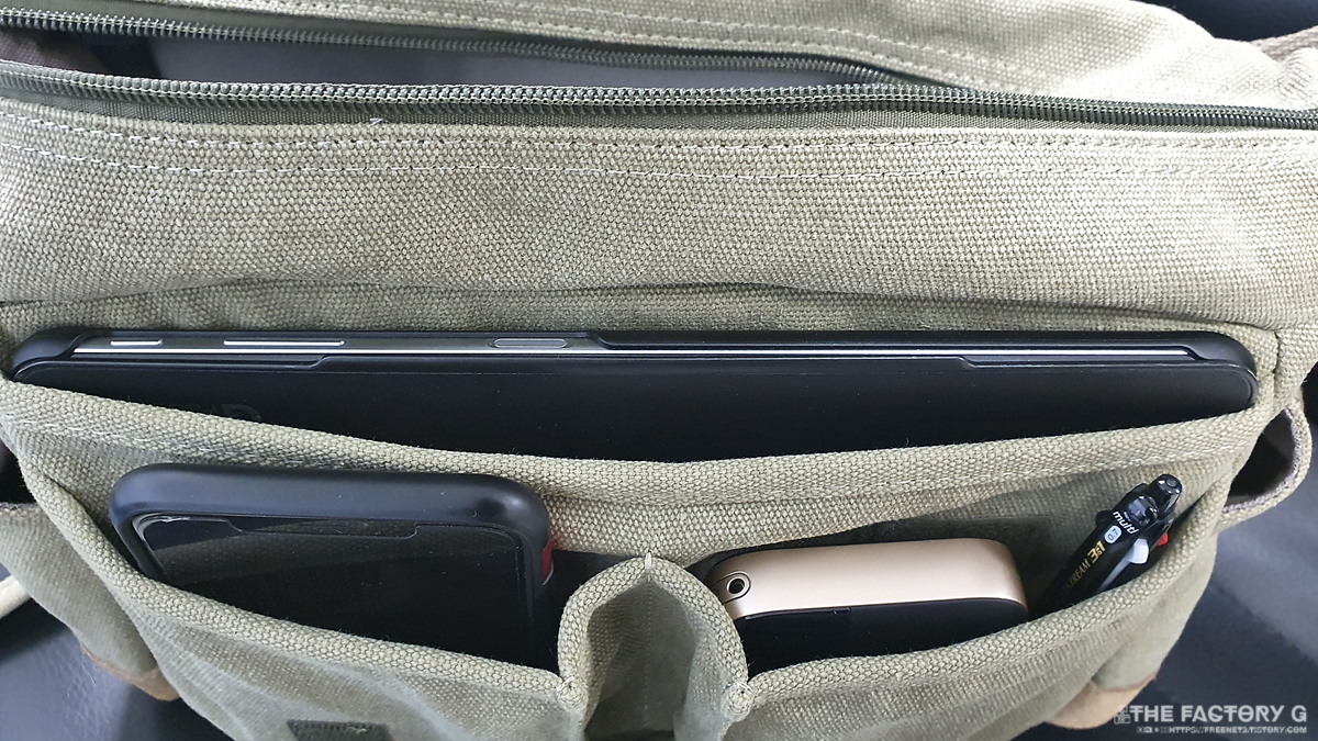 태블릿 하나와 휴대폰, LTE라우터와 펜 한 자루 수납했는데 여유공간이 좀 있습니다.