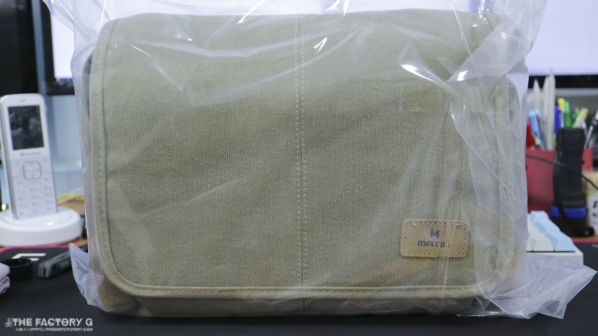전면 커버에는 별다른 수납부 없이 매틴 로고만 가죽으로 붙어있습니다. 캔버스 재질이며