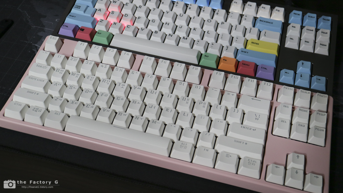 나름 나쁘지않은 구성을 자랑하는 키보드입니다. 핑크색의 프레임 또한 잘 어울리는 편입니다.