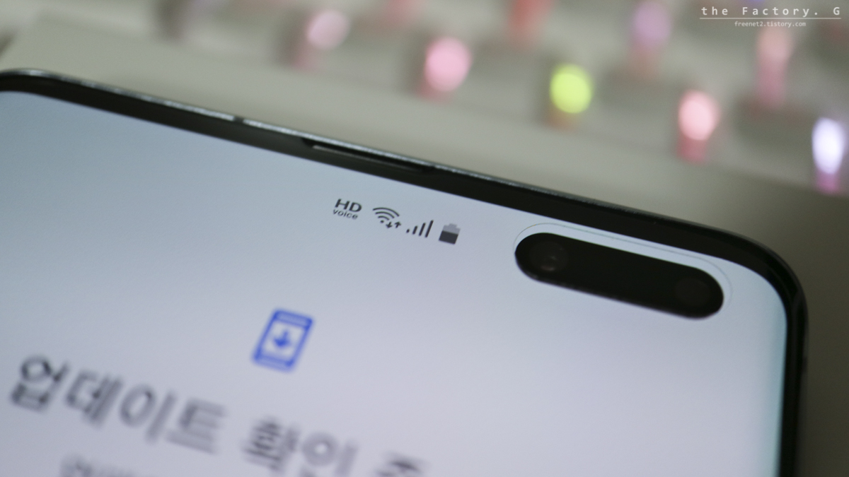 전면 카메라는 액정에 타원형의 공간을 내고 그 속에 있습니다. 삼성은 이걸 Infinity O 라고