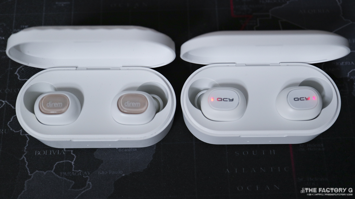 좌측이 디렘 HT1, 우측이 QCY T2s입니다. 전반적으로 외양은 비슷합니다.