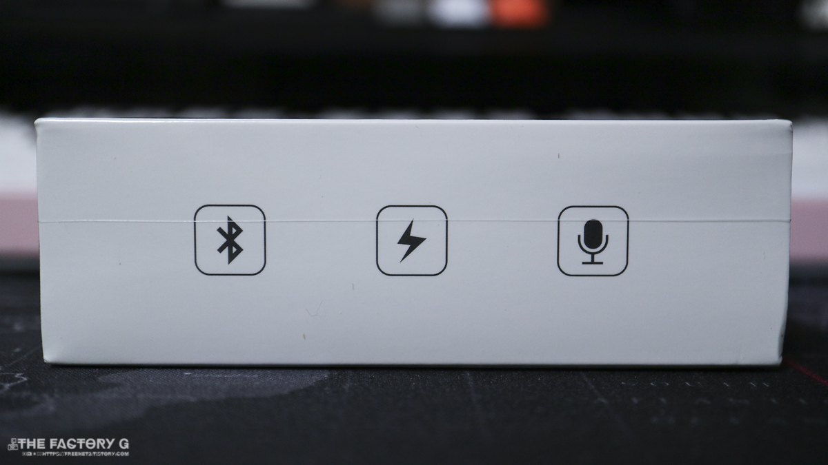 측면에는 제품의 대표적인 특징 블루투스, 무선충전, 마이크 이미지가 새겨져있습니다.