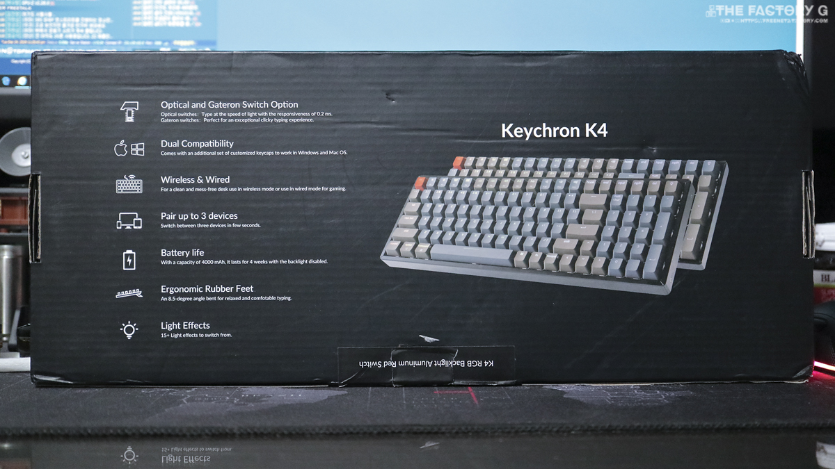 제조사는 Keychron이고 유/무선으로 사용할 수 있는 K4 알루미늄 키보드입니다.