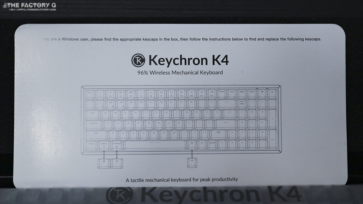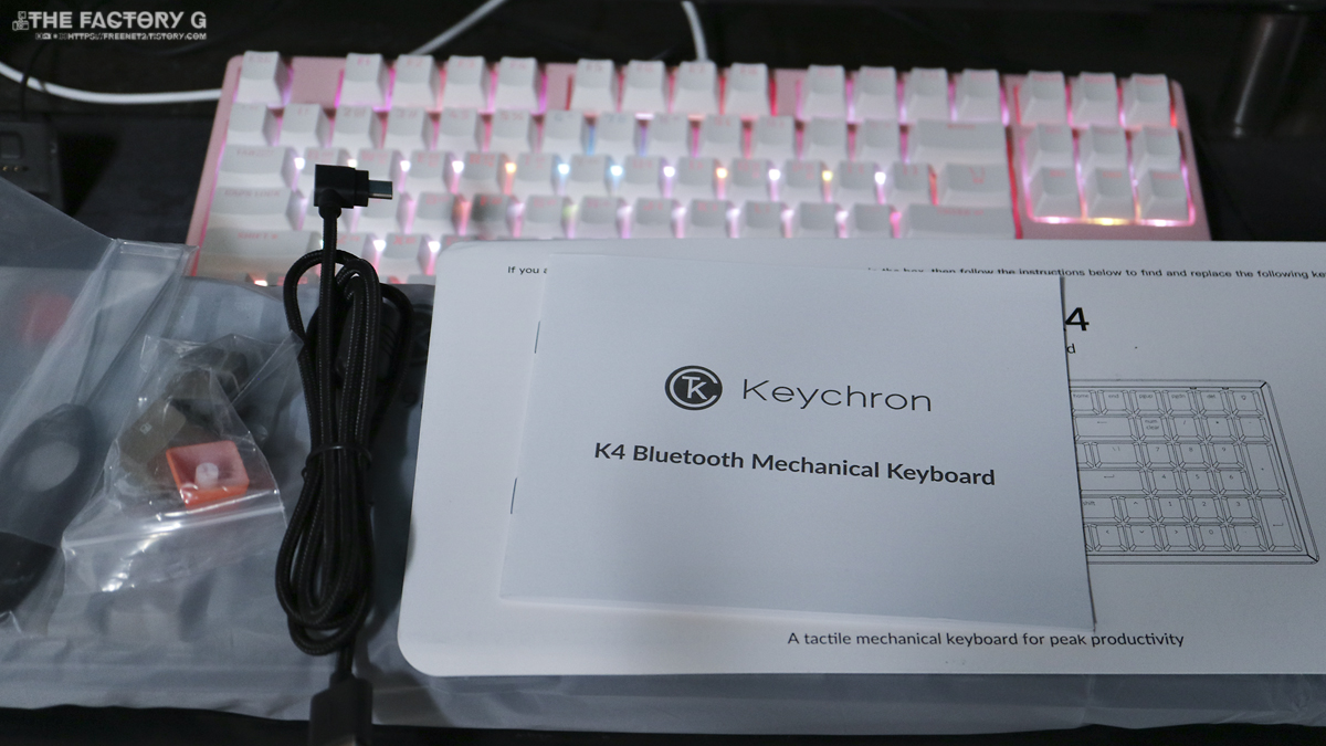 구성품으로는 키보드 본체(맥용 커맨트키 장착), 키캡 리무버, 윈도우 커맨드키,