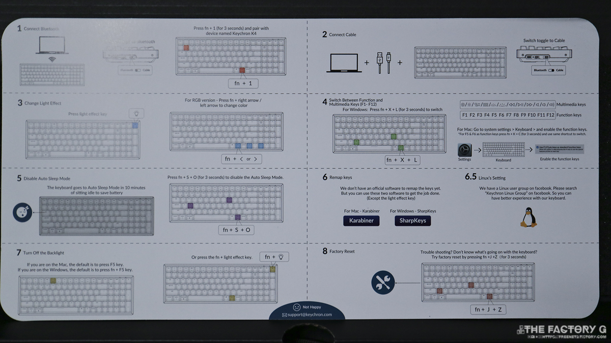 후면에는 각종 기능을 사용할 수 있는 키맵정보가 기록되어 있습니다.