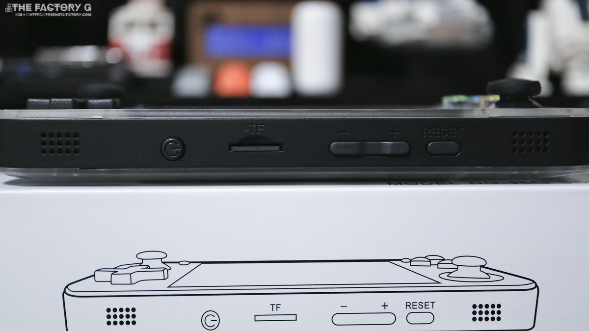 아래면에는 스피커가 좌우에 자리잡고 있고 왼쪽부터 전원 버튼, TF 슬록, 음량 조정버튼, 리셋