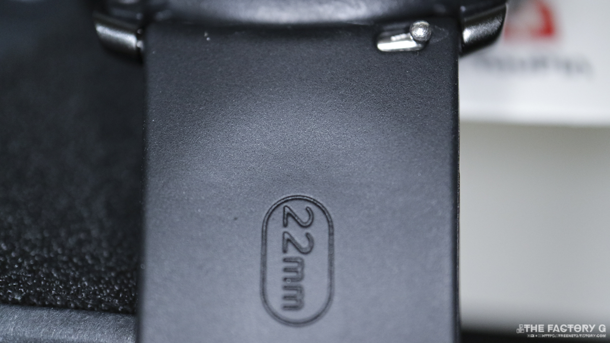밴드는 22mm이며 퀵 릴리스 바가 있어 밴드 교체가 편리합니다.