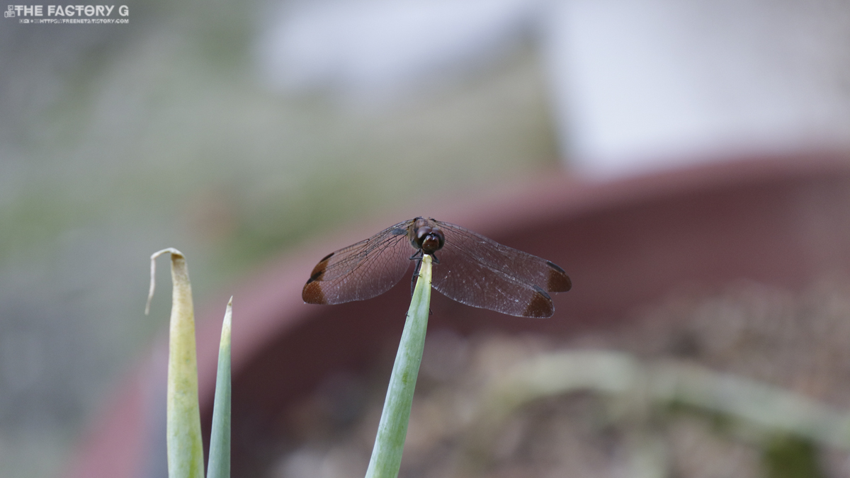 집에 들어오기전에 1층 집에서 꾸며놓은 간이화단에 잘 자란 파 위에 잠자리가 내려앉아