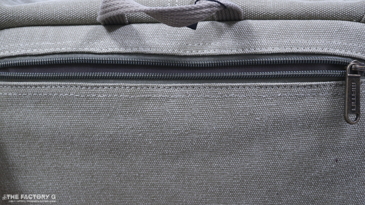 전면 커버에는 별다른 수납부 없이 매틴 로고만 가죽으로 붙어있습니다. 캔버스 재질이며