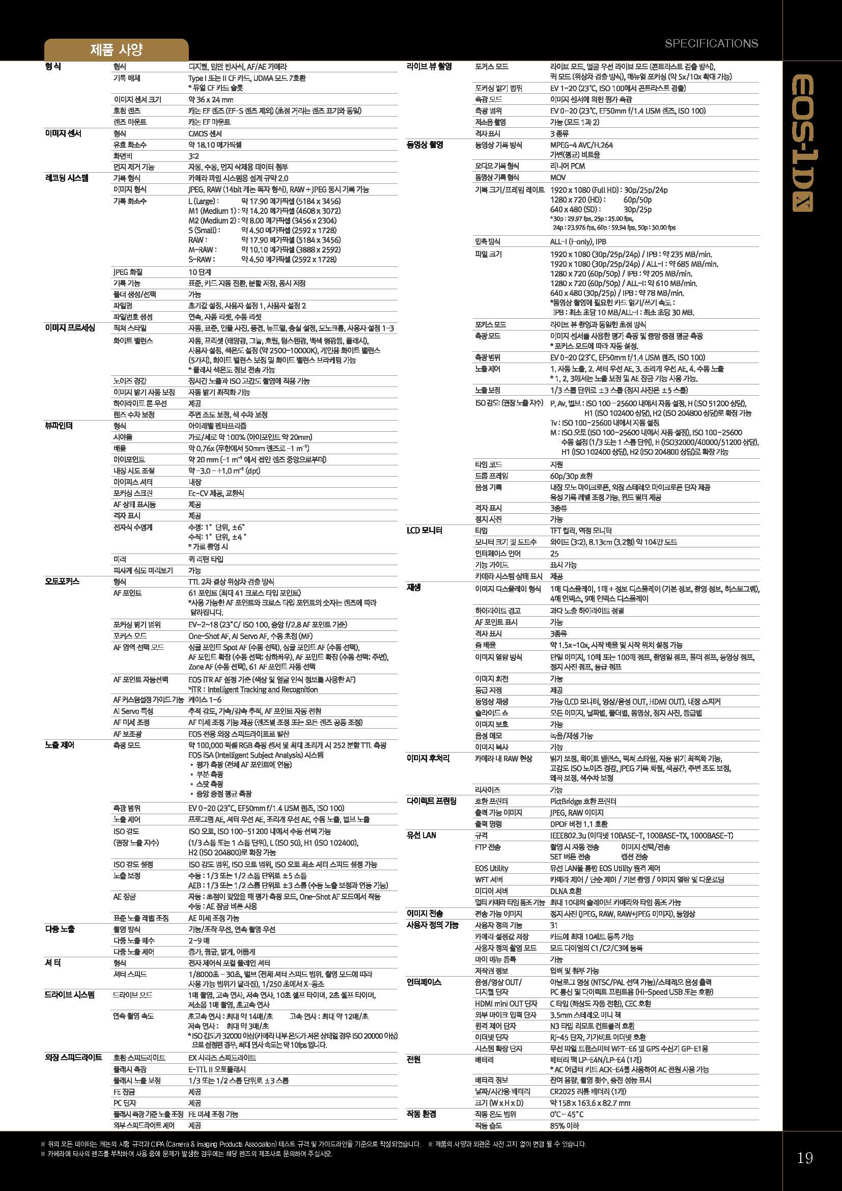 1810만 화소, 듀얼 DIGIC V+ 엔진 등을 기반으로 플래그쉽 카메라로써의 기능과 성능을