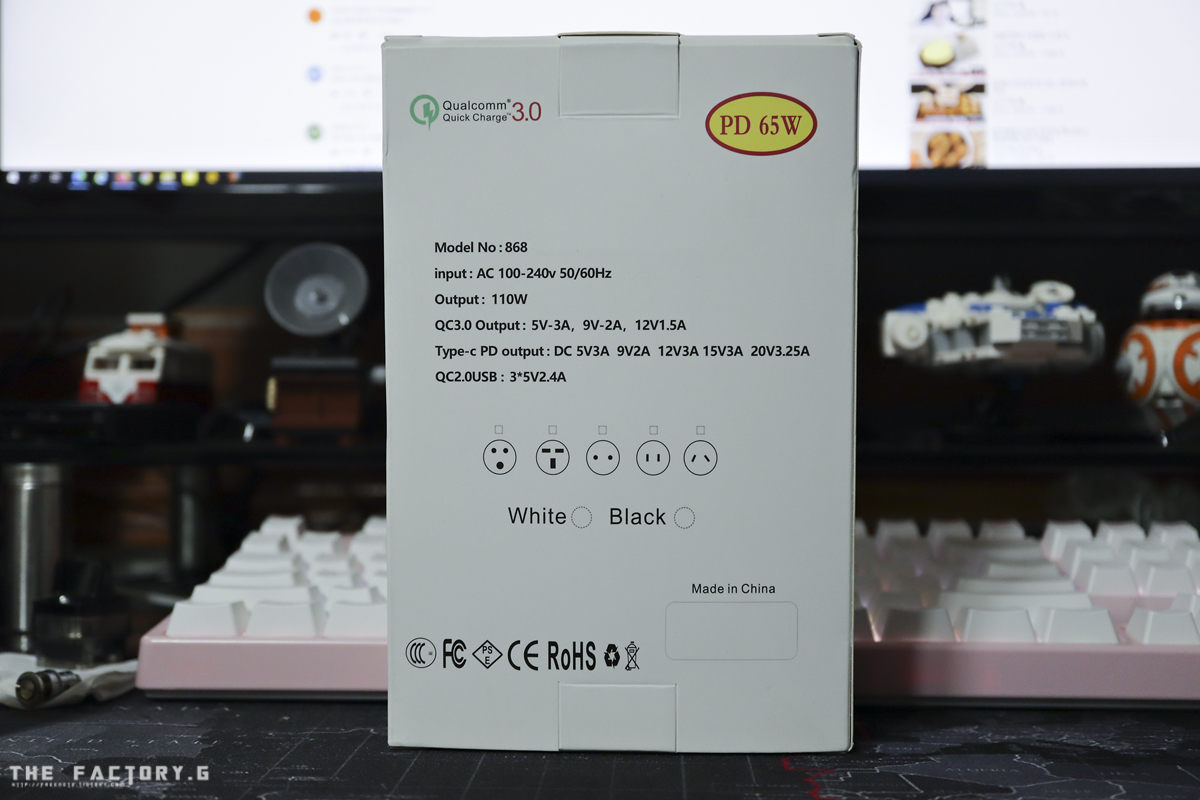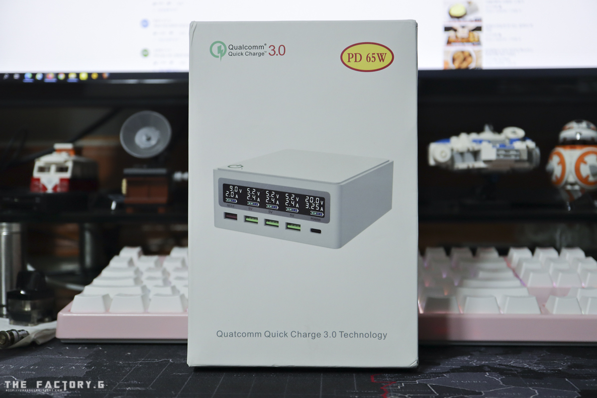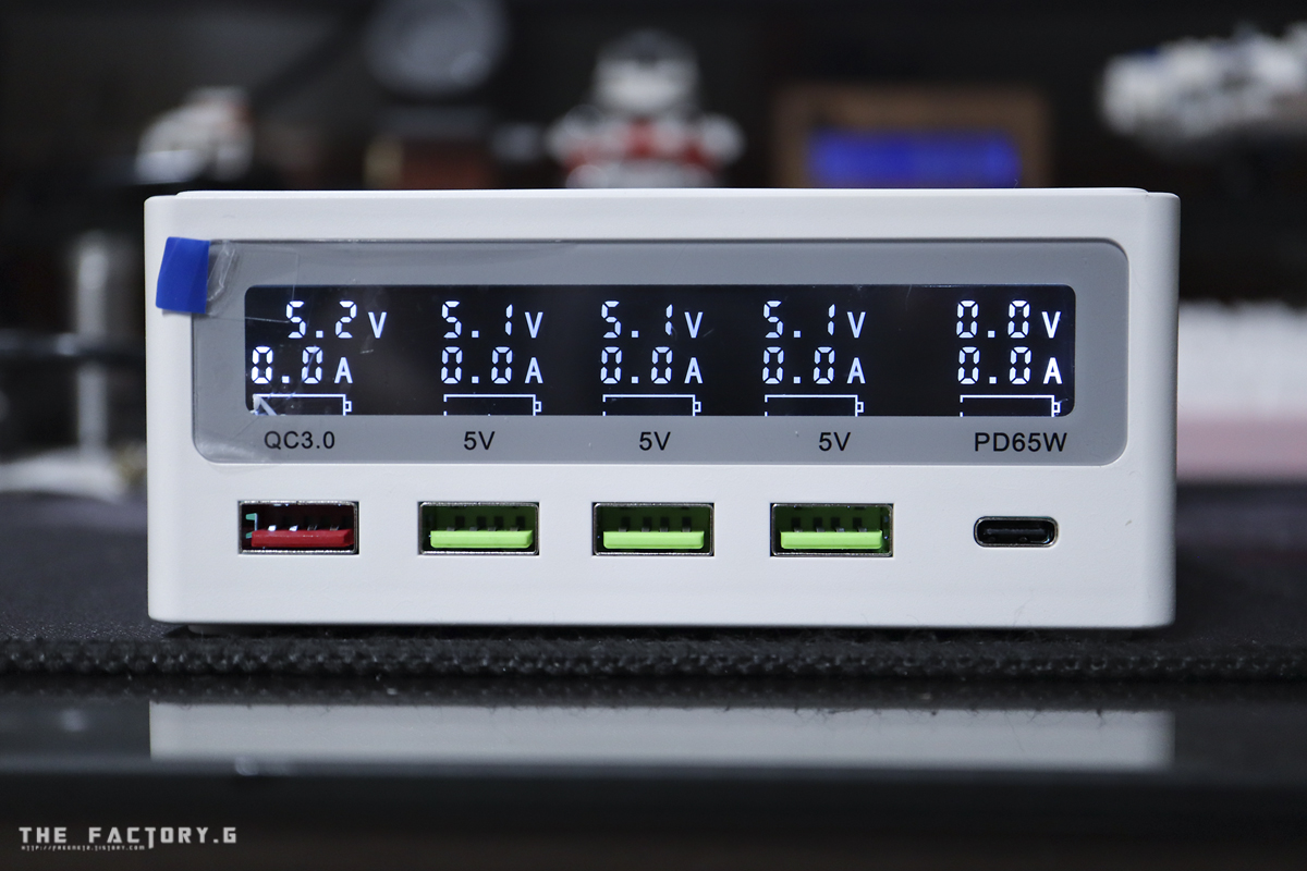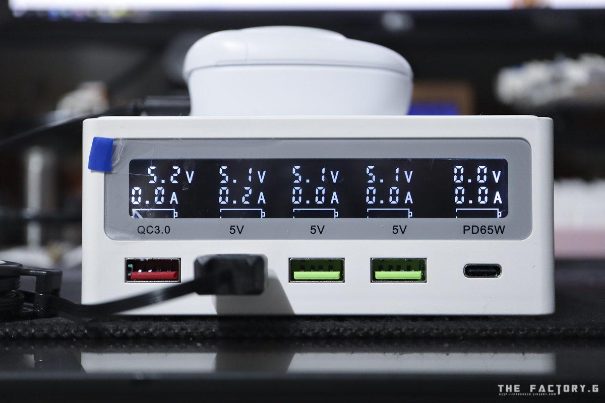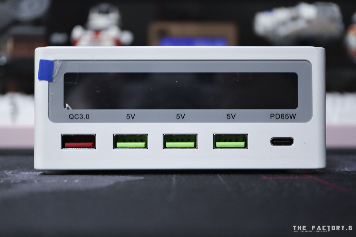 제품 본체 전면입니다. 좌측으로 부터 QC3.0 포트 1개, QC2.0 포트 3개, USBPD 포트 1개로