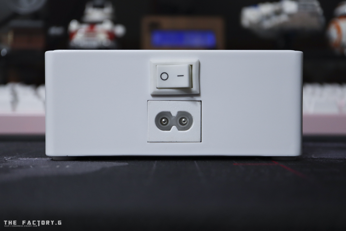 후면에는 전원케이블 연결부와 단추형 전원버튼이 있습니다.