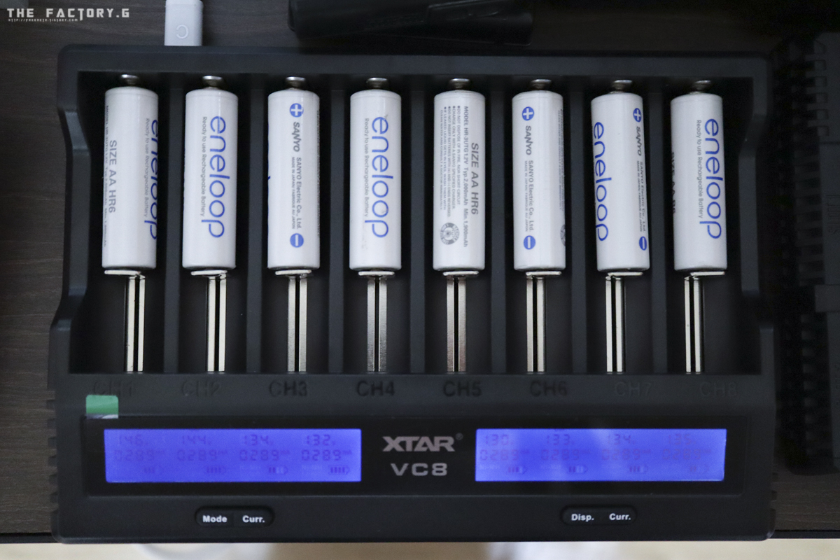 에네푸르 건전지 8개를 한 번에 충전하는 중입니다.(다음 날 촬영 시에 플래쉬에 사용할려고