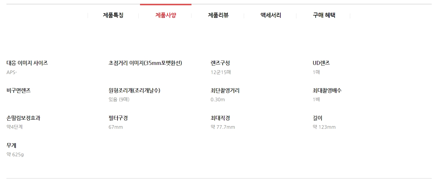 추가되었고 방진/방습을 지원합니다. 렌즈 구경은 67mm입니다.