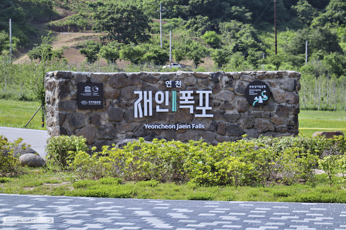 재인폭포 입구에 새로이 만들어진 탐방센터에 세워진 재인폭포 표지석입니다.