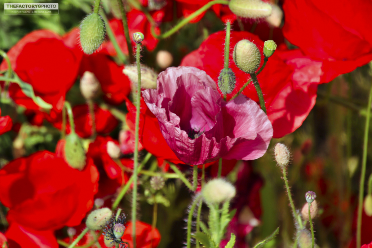 약 800m정도 이어지는 나무데크 탐방로 주변에는 양귀비꼿과 수레국화가 활짝 피어나
