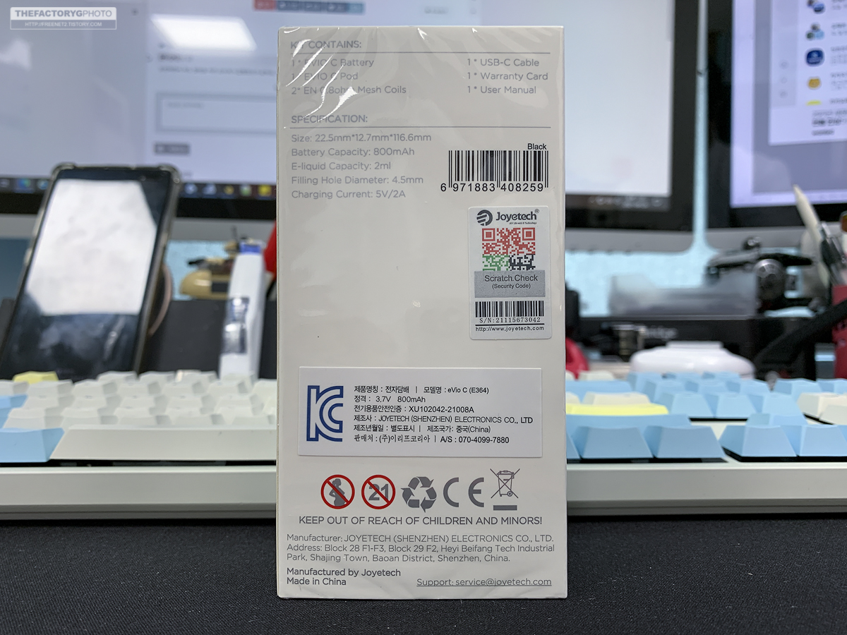 제조사는 중국 Joyetech이며 한국 수입사가 OVAL이어서 국내에서는 OVAL EVIO-C로