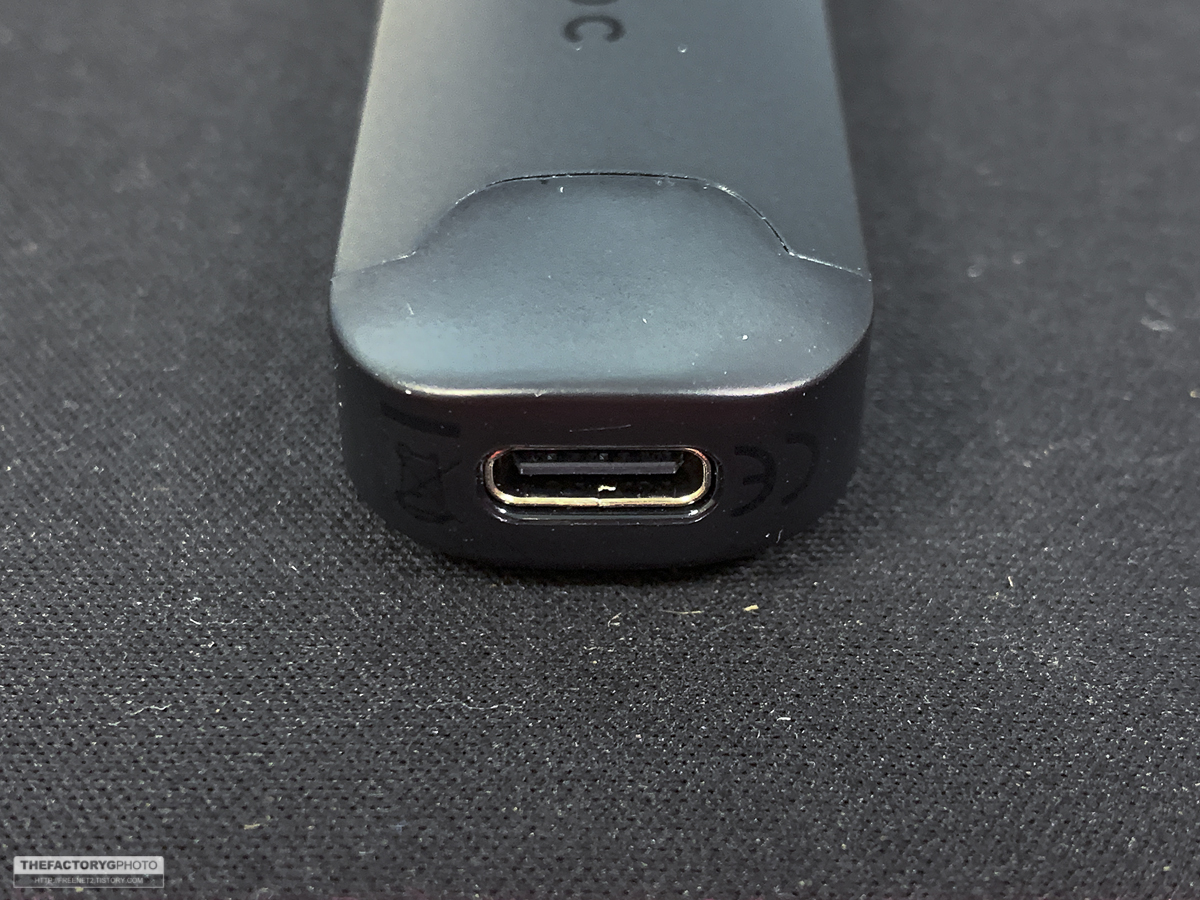 제품 아래부분에는 USB-C 충전포트가 있습니다. 배터리 용량은 800mAh입니다.