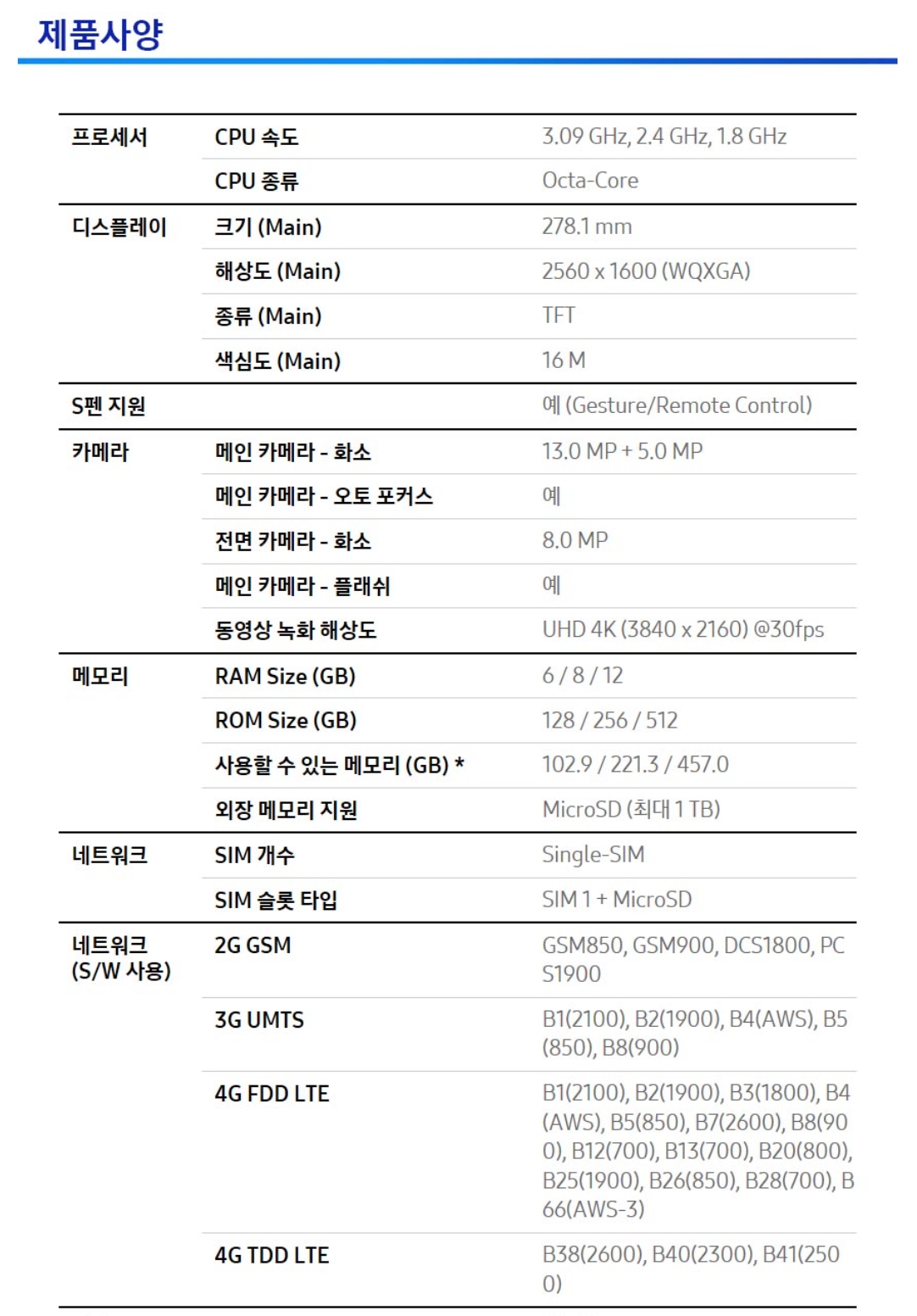 박스 전면에는 제품 전후면 이미지와 S펜의 이미지가 그려져있습니다.