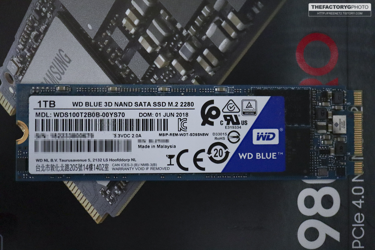 그동안 메인으로 고생한 WD BLUE 1TB SSD입니다. SATA 방식이다보니 B+M 키 방식입니다.