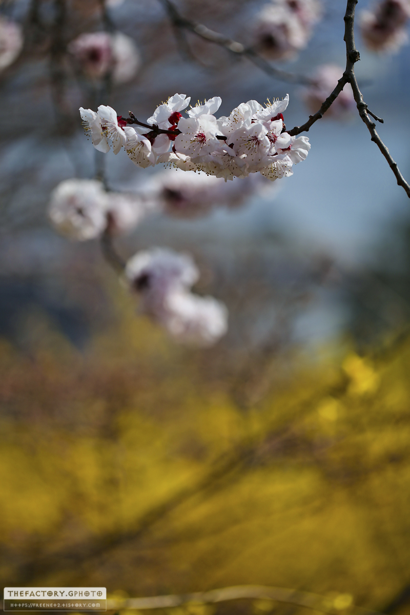 응봉산 정상 부근에서 벚꽃과 개나리를 같이 촬영할 수 있었습니다.