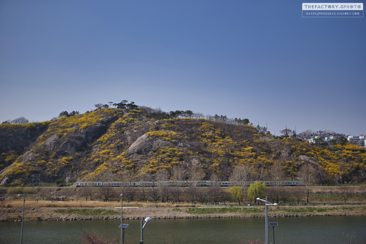 열차와 노란 개나리가 만개한 응봉산이 이쁩니다.
