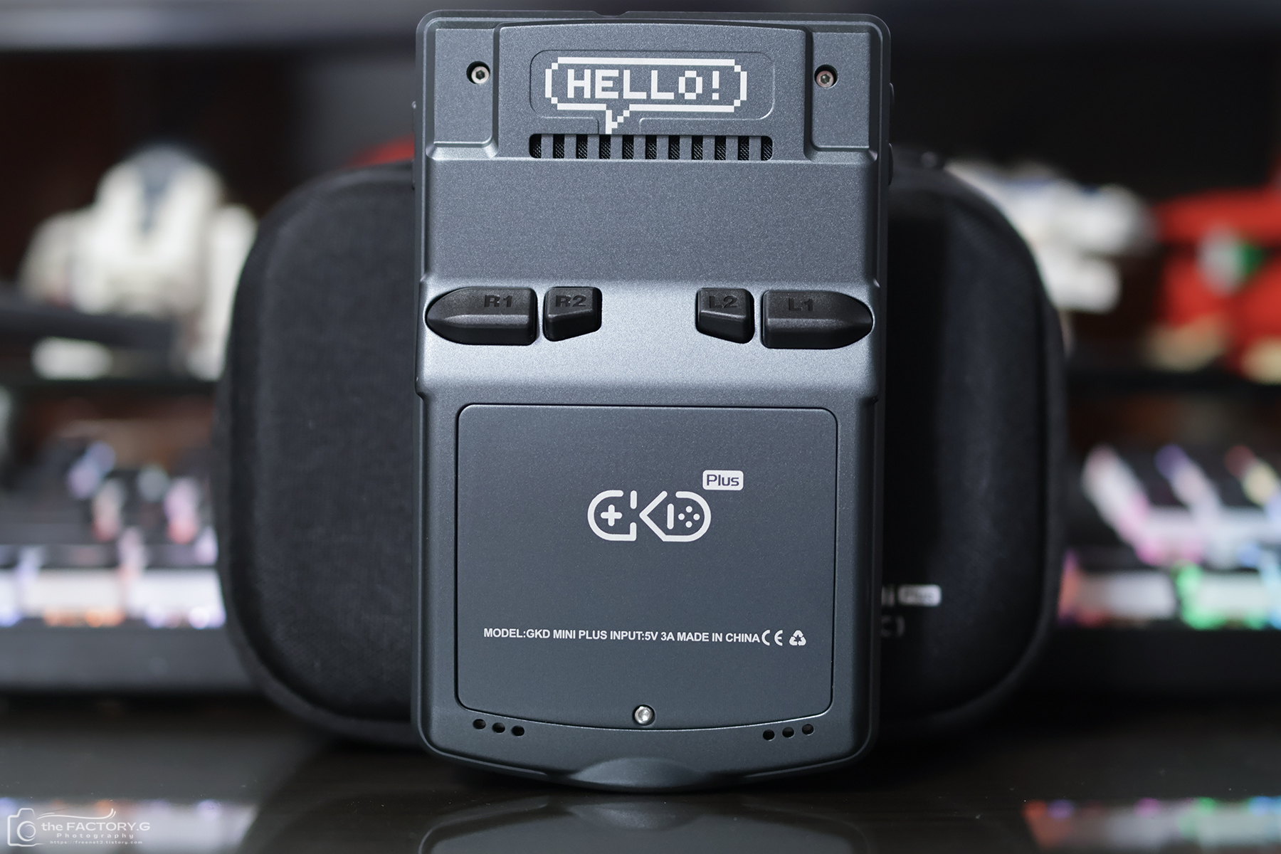 후면에는 스피커홀, 배터리 포트, L1, L2, R1, R2 버튼리 자리잡고 있습니다.