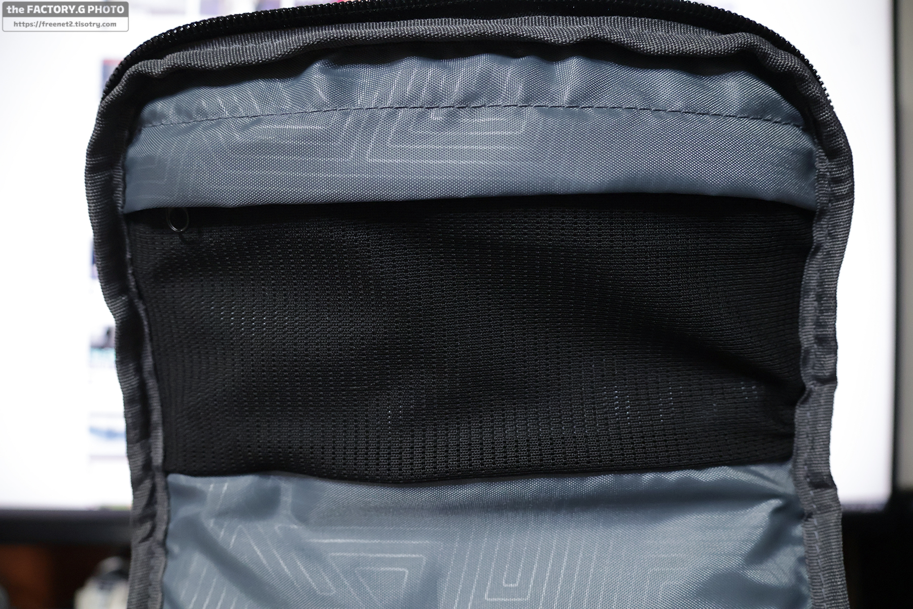 상단에는 별도의 수납공간이 따로 있고 별도의 지퍼로 개봉합니다. 하단과 연결되는 않아 온전히