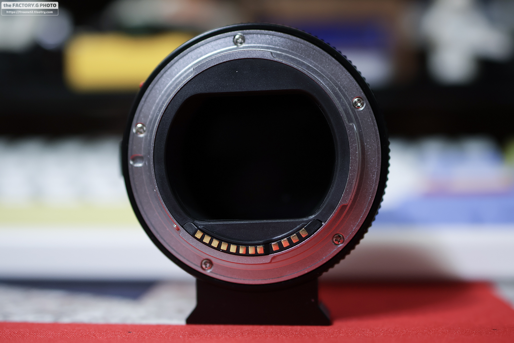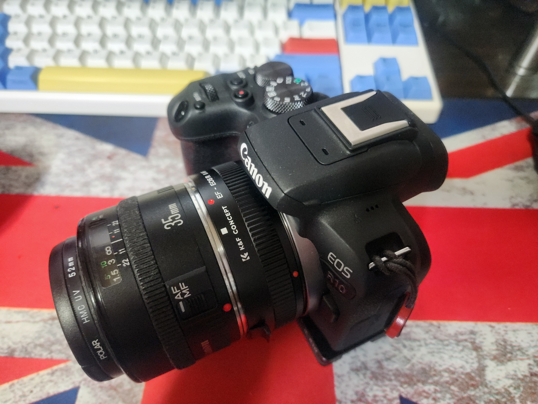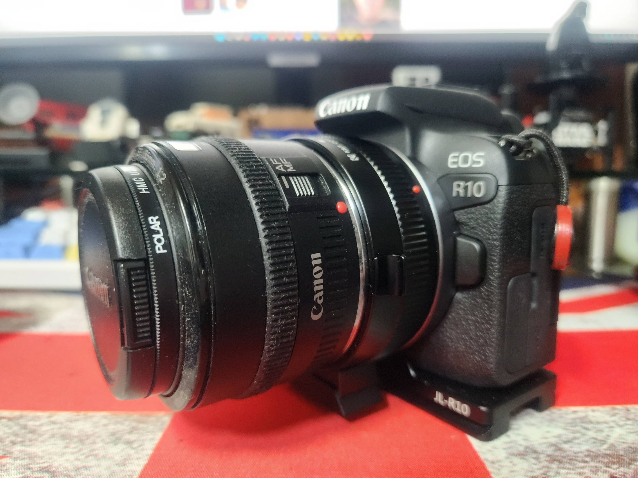 R10에 연결한 모습니다. 사용한 렌즈는 EF 35mm/F2 일명 사무캅입니다. 잘 장착되고 카메라와 통신도